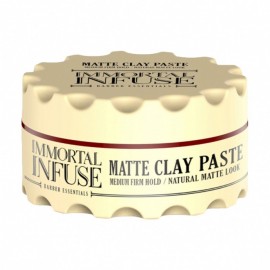 Immortal Infuse Matte Clay Paste — это средство для укладки, что подарит вашим волосам стильный матовый финиш, естественную текстуру и потрясающий объем. Глиняная паста обеспечивает среднюю фиксацию объемной прически и сохраняет волосы мягкими. Благодаря особой формуле продукт придает опрятный вид даже жирным волосам. Основой средства являются фик..